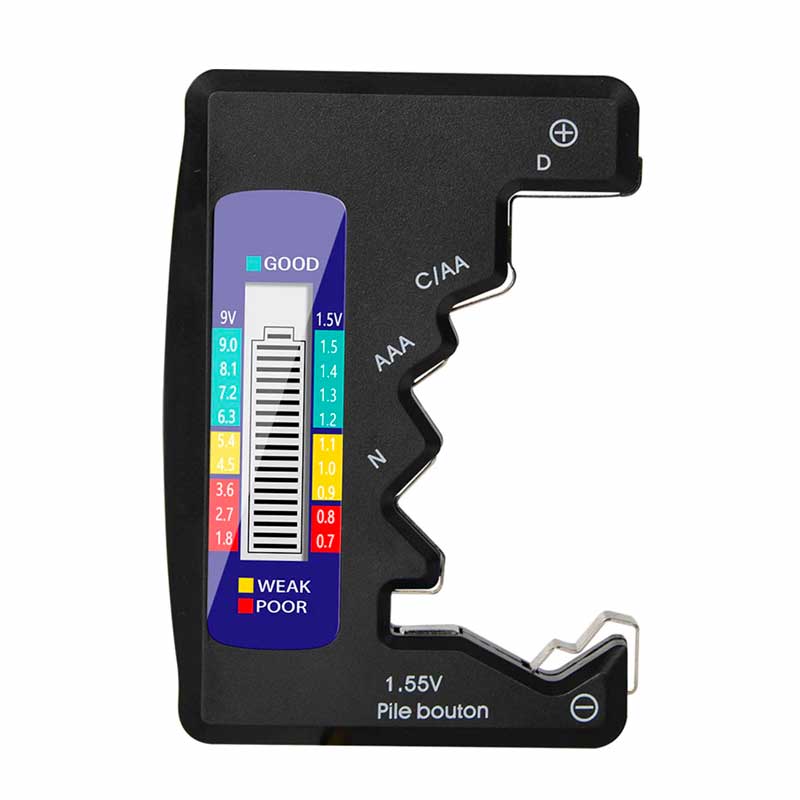 Seu uso é universal e é capaz de medir o nível de qualquer pilha ou bateria, seja ela C, AA, AAA, D, N, 9V 6F22 ou bateria de botão 1.5V.